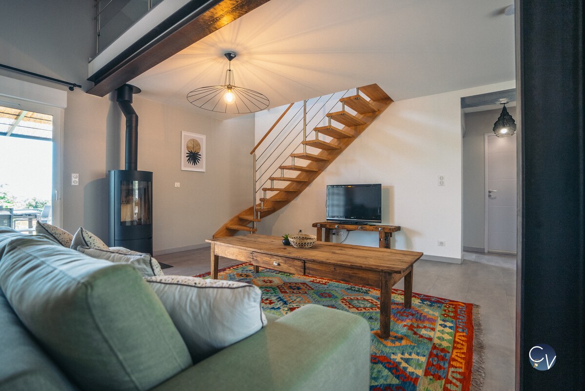 Privatice toda esta casa; pensada como un paréntesis fuera del tiempo, esta mezcla autenticidad y comodidad moderna Un ambiente íntimo, un espacio de bienestar privado: un verdadero nido para reponer energías; con sauna y bañera de hidromasaje. Para una ocasión especial o simplemente tomarse el tiempo para reunirse, cada detalle está pensado para ofrecer una experiencia única, suave y relajante. Aquí todo invita a la desconexión, con el placer de saborear el momento presente.
