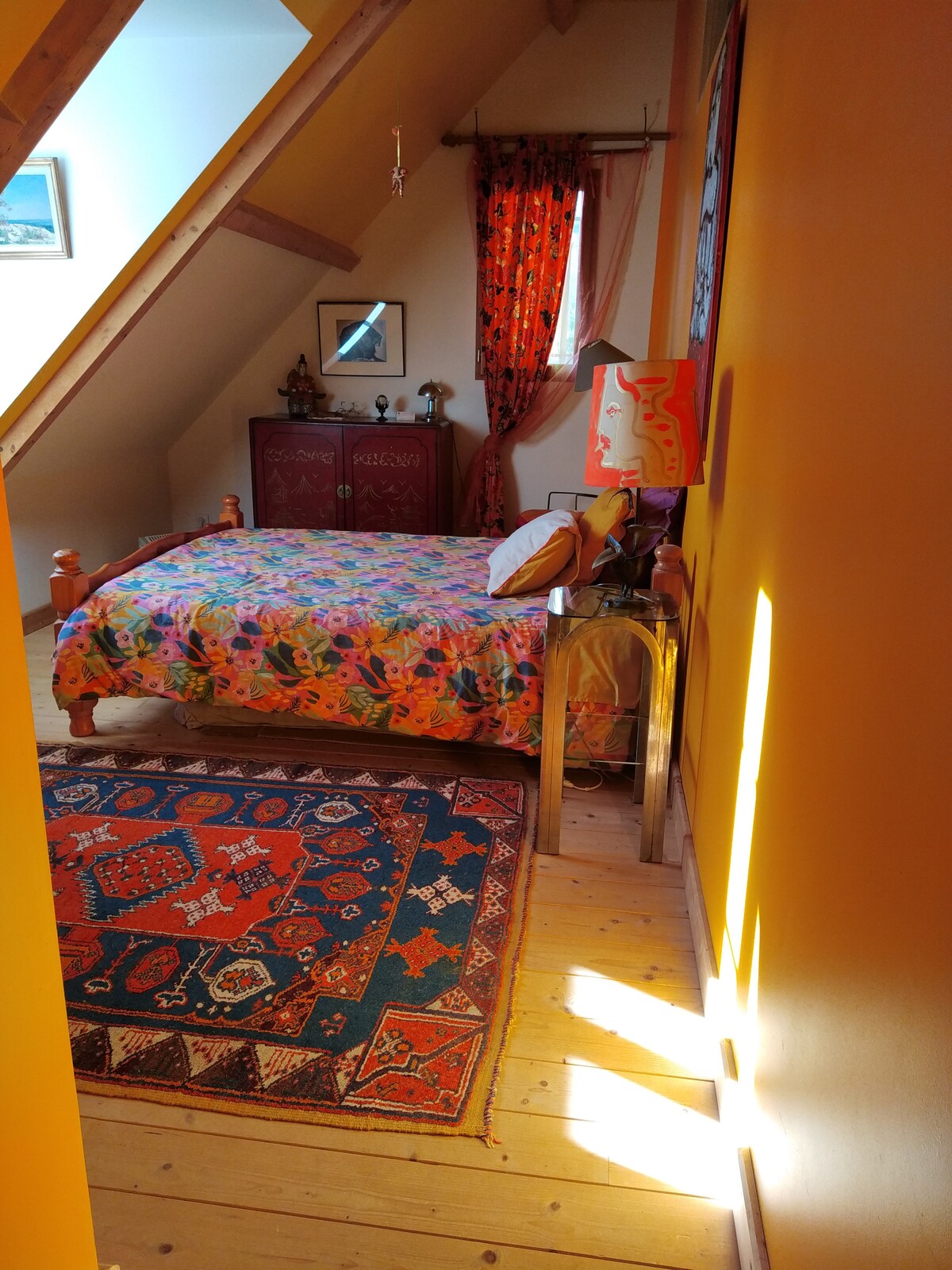 Le damos la bienvenida a nuestra encantadora y gran casa en el Valle del Querido muy tranquilo. A 50 minutos del castillo de Chambord, a 40 minutos del ZooParc de Beauval. Independiente, de planta baja, con su gran terreno cerrado arbolado, mantenido ecológicamente. Está equipada con una cocina equipada, comedor-salón. 3 dormitorios 1 cama de 160, 1 cama de 140, 4 camas de 90. 2 baños Un estudio comunicante (1 cama de 1,60 m) con baño, aseo, zona de cocina.