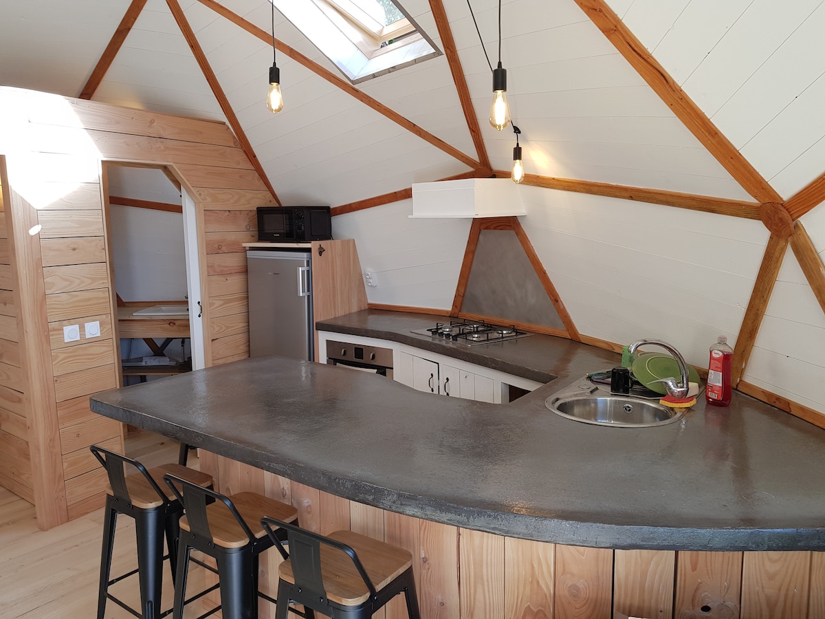 Inauguración en marzo de 2026 😊 Escápate en pareja a nuestra cúpula geodésica «Le Cocon», situada frente a las montañas, y disfruta de una escapada inolvidable. Sus ventanas triangulares dejan entrar la luz y ofrecen una relajante vista panorámica, que invita a reducir la velocidad y disfrutar del momento presente. Diseñada para una escapada romántica, esta cúpula es un refugio cálido e íntimo en el que cada detalle se ha concebido cuidadosamente para crear un ambiente acogedor y apacible.