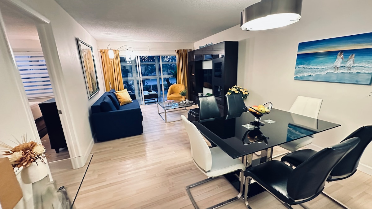 ¡Te damos la bienvenida a la joya de Tiffany House! Esta unidad de 900 pies cuadrados diseñada profesionalmente por Steven G. se encuentra a una cuadra de la playa, a pocos pasos del Intracoastal y a 7 minutos en Uber de las tiendas, restaurantes y vida nocturna en Las Olas Blvd. Esta moderna propiedad fue construida en 2018 y ofrece una completa gama de servicios similares a los de un hotel, que incluyen 2 piscinas en la azotea, gimnasio, seguridad las 24 horas y aparcamiento con servicio de aparcacoches (por una tarifa). Nuestro apartamento tiene un baño tipo spa, cocina moderna y un enorme patio.