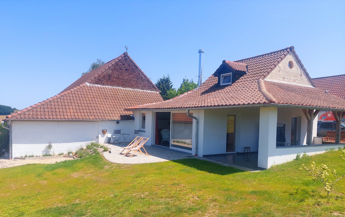 Casa independiente en finca vinícola aislada situada a 30 km de Bruselas. Alojamiento espacioso y confortable orientado al sur suroeste. Finalización de la renovación en 2023 a la salida del horno de la granja. Jardín muy grande, terraza cubierta y terraza exterior. Casa rural integrada en un paisaje con vistas excepcionales y despejadas de los alrededores. Numerosas actividades culturales y al aire libre. Tienda de comestibles a 6 min, pueblo a 10 min, a 5 min del canal Bruselas Charleroi, muchos paseos agradables...