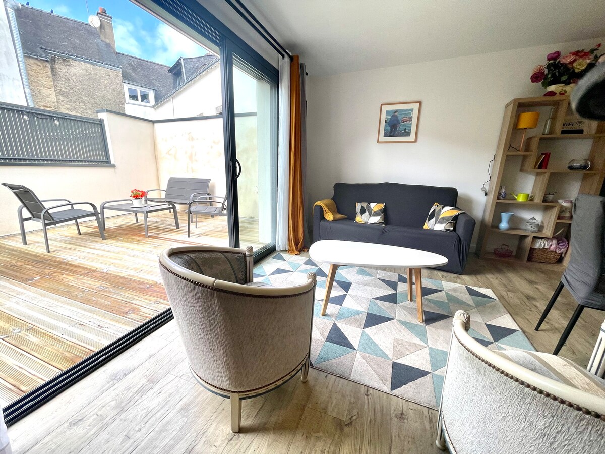 Dúplex tranquilo con terraza, centro Auray