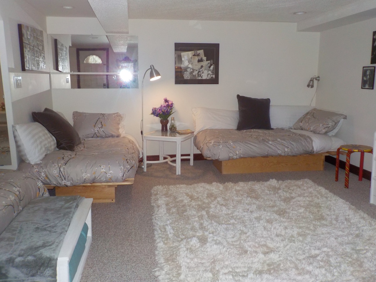 Our third floor apartment is quiet and private. Front door has a code lock, it is important that you hold the DOOR HANDLE towards you as you do the CODE. Your space has a code lock. This space does not have a private entrance, you enter the front door up the stairs, the white door on your left is yours. The space is quite airy and relaxing, kick your shoes off and relax. Continental BREAKFAST must be requested when you book or checkin. $8.00 a day Parking info is under DIRECTIONS