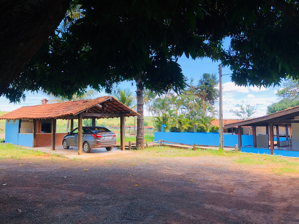 Chácara aconchegante situada a 70km de Brasília, a 5km da divisa entre DF e GO e a 1km da BR 251. Lugar perfeito para descansar e contemplar a natureza. Local com diversos pássaros, nascente, frutíferas, mata, tanque para pesca infantil e galinheiro. Casa confortável com churrasqueira, mesa de ping pong, duas piscinas, uma delas infantil, ideal para momentos em família e de pequenos grupos de amigos. Conceito de hospedagem rural de perfil familiar.