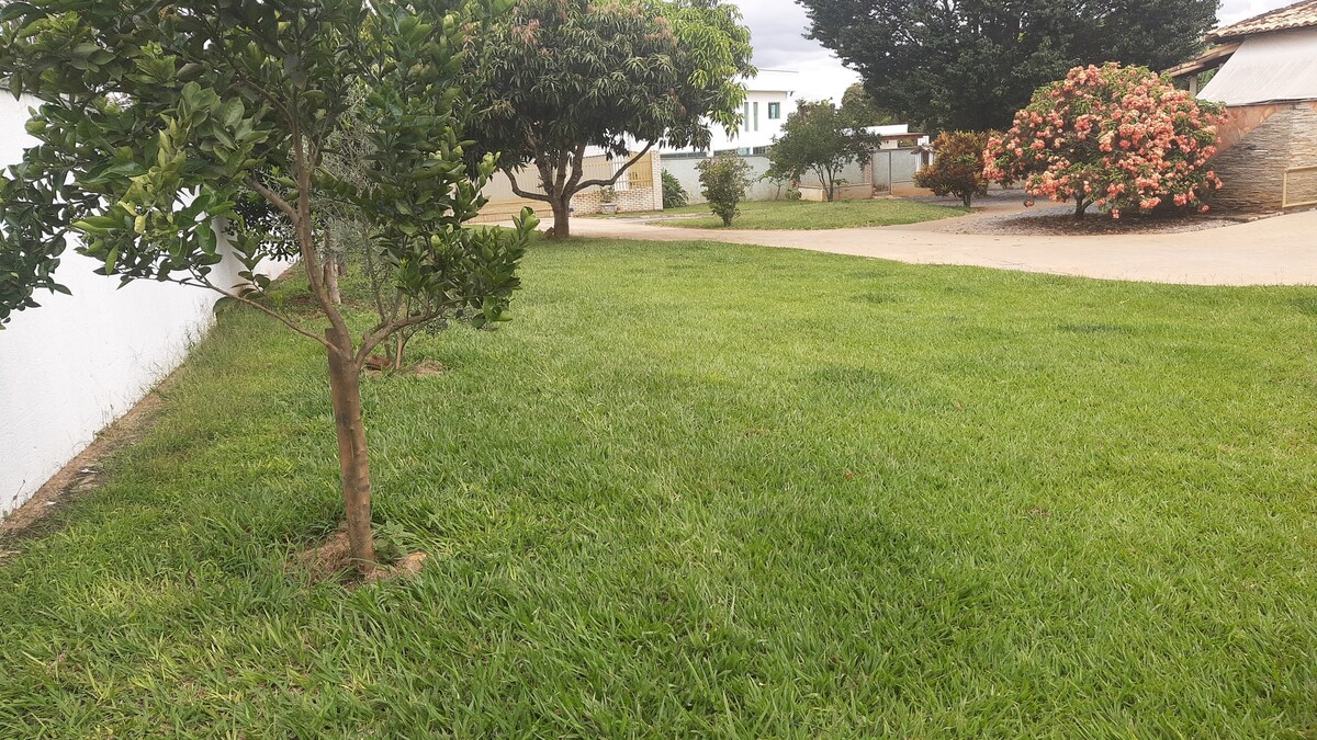 Casa rústica y suspendida. ¡Ubicada en una comunidad cerrada, con una imagen! Somos anfitriones residentes en el alojamiento. Ofrecemos una suite privada para los huéspedes y compartimos espacios comunes como cocina, balcón, jardín. También tenemos tres mascotas. The Iron, padre del cielo (huskies siberianos) y gato llamado Djoko. Situado en el jardín botánico, está a 5 km de Sup School. Defensa y a 10 km de la Explanada de los Ministerios, cerca de Ermida Don Bosco, Parque das Copaíbas y Jardim Botânico Bsb.