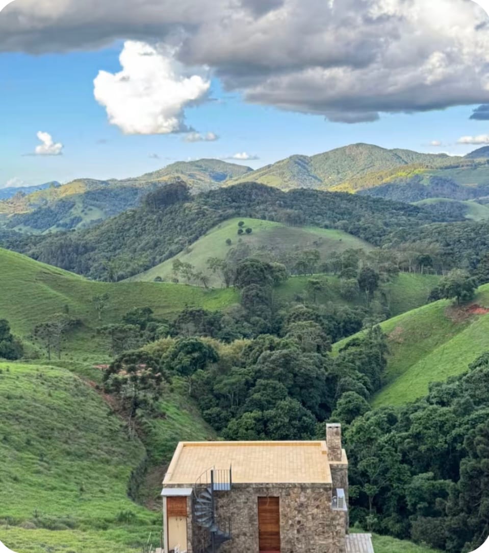 Relájese en este espacio tranquilo y elegante. Con una vista espectacular de las montañas de la Sierra de Mantiqueira, nuestro refugio fue diseñado para un disfrute total del hermoso paisaje que lo rodea. Ubicada en la cima de una montaña con una vista de 360 grados, incluyendo el pico de Agulhas Negras, la casa ofrece total comodidad y privacidad para momentos de relajación en la naturaleza virgen, con acceso a la cascada de la propiedad y sauna de leña semi-húmeda con una vista sorprendente.