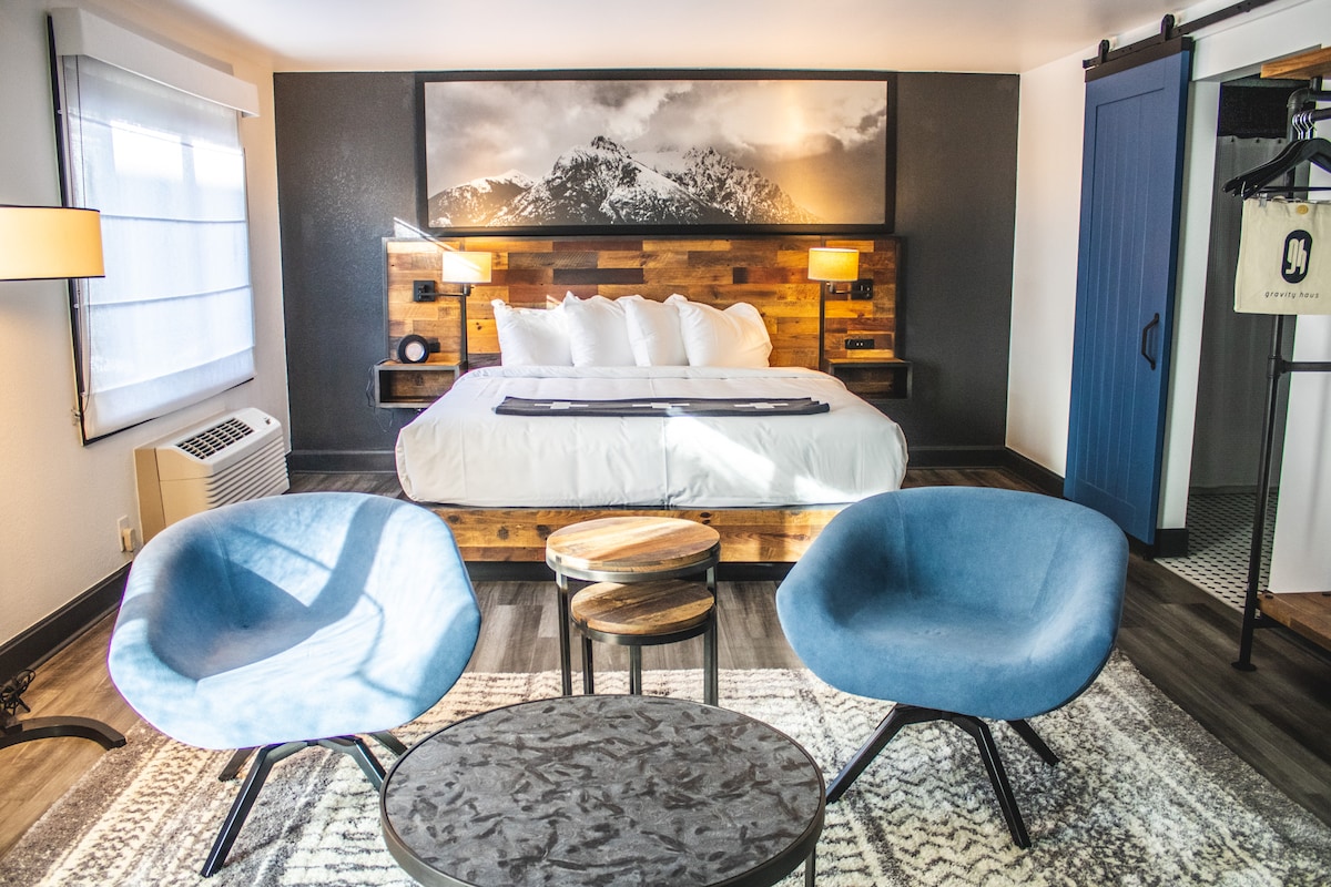 Escápate a The Betty en Breckenridge, Colorado, un refugio acogedor pero lujoso. Este acogedor espacio cuenta con una gran cama tamaño king, una sala de estar para dos y un baño doble con tocador equipado con aceites esenciales EO. Disfruta de un café Unravel recién molido, una combinación de bañera y ducha, un escritorio tecnológico y DirecTV. Perfectamente diseñado para el confort y la relajación.