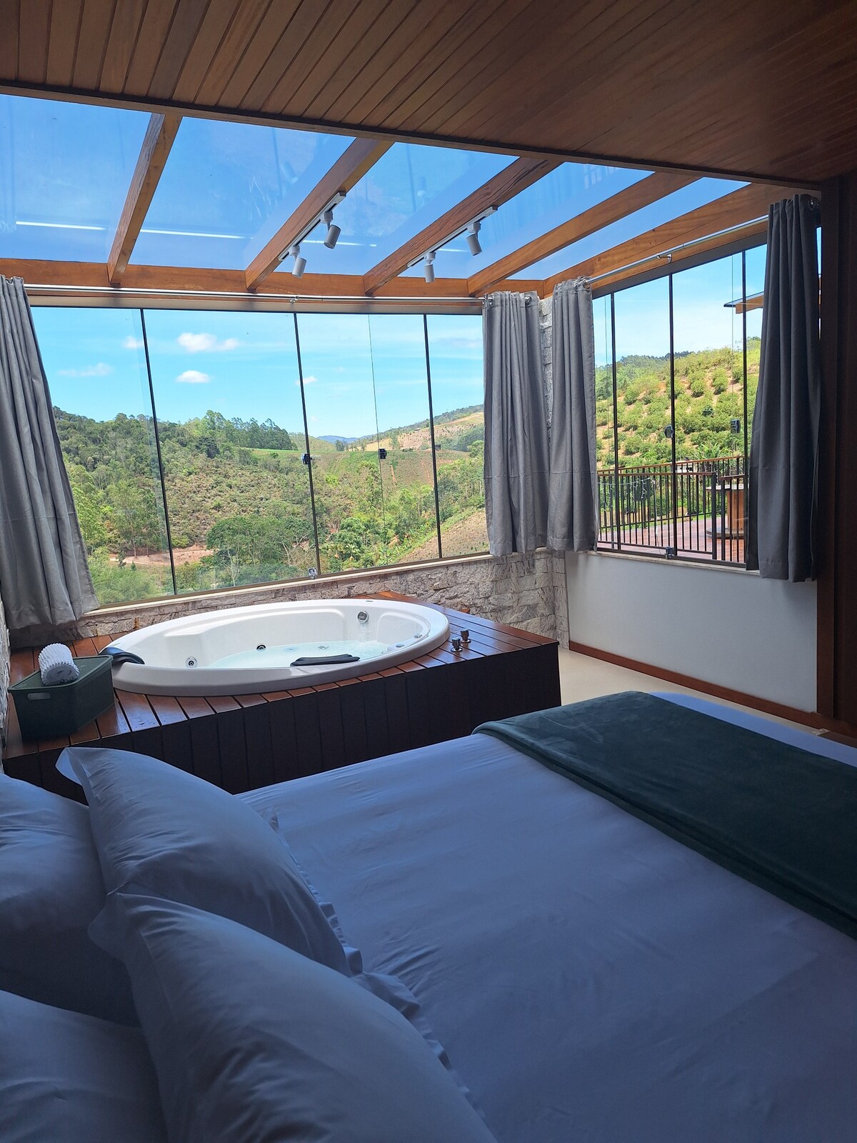 Retiro romántico en la montaña con jacuzzi privado climatizado y vistas al lago. Una invitación a reducir la velocidad, brindar en pareja y disfrutar del silencio de Pedra Azul. 📍A solo 10 minutos del centro de Pedra Azul y de la encantadora Rota do Lagarto, en un condominio cerrado y tranquilo. ✨ Ideal para parejas, con capacidad para un máximo de 4 adultos (posibilidad de un quinto huésped). ⭐ Somos Superanfitriones, con reseñas consistentes y atención en cada detalle de tu estancia.