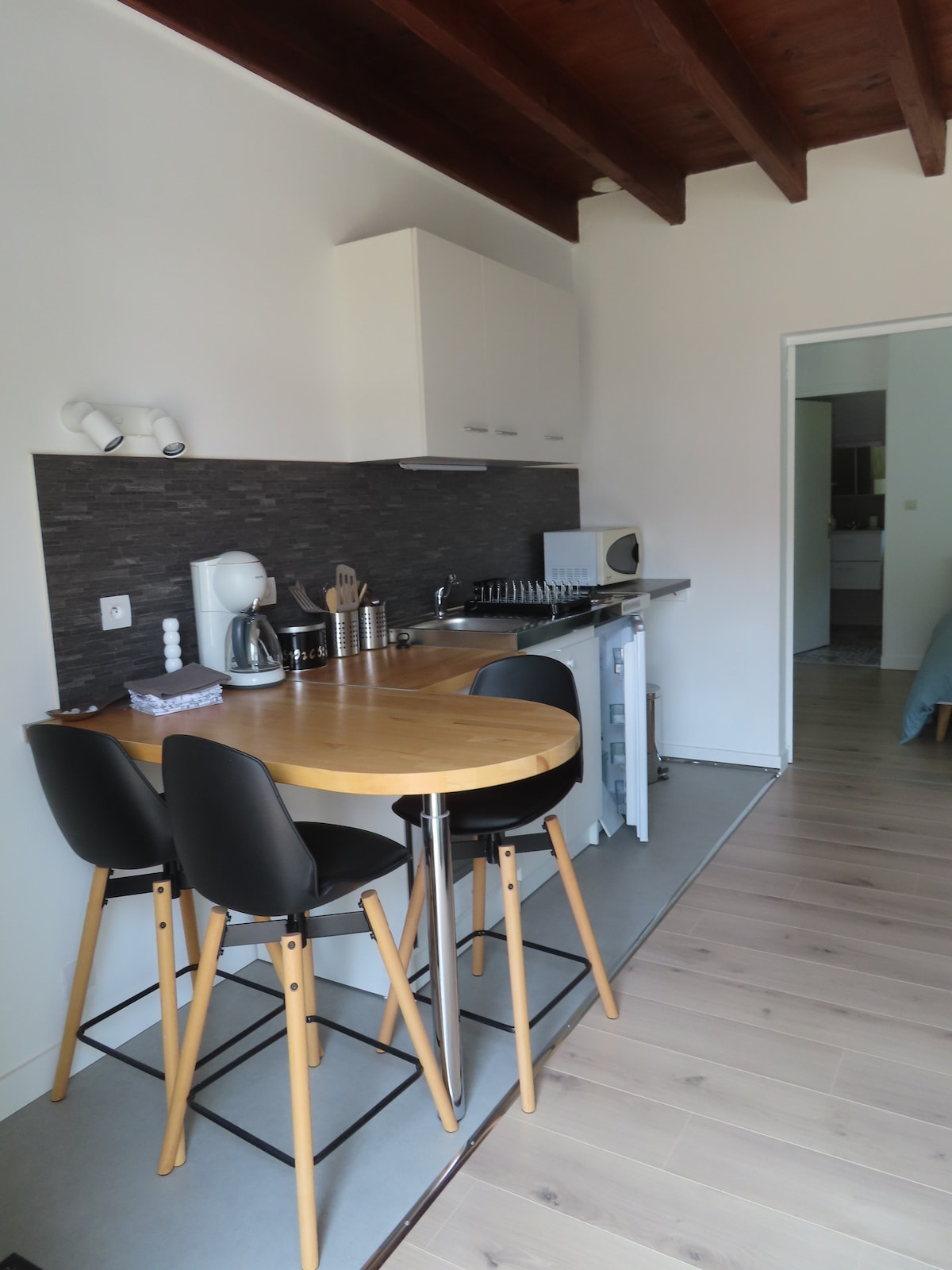 pequeño apartamento reformado de 25 m2 con cocina equipada (horno, lavadora, nevera, placa vitrocerámica de 4 fuegos, microondas ...) sala de estar con un sofá cama de 140, un dormitorio con una cama de 160 (colchón luxury ropa de cama nuevo de diciembre de 2022) + cuarto de baño. Situado cerca del centro de la ciudad, de sus tiendas y lugares de ocio, a 45 minutos de Le Puy du Fou, a 1 h 15 min del Futuroscope de Poitiers y a 35 minutos de Cholet. Entrada privada y aparcamiento cerca.