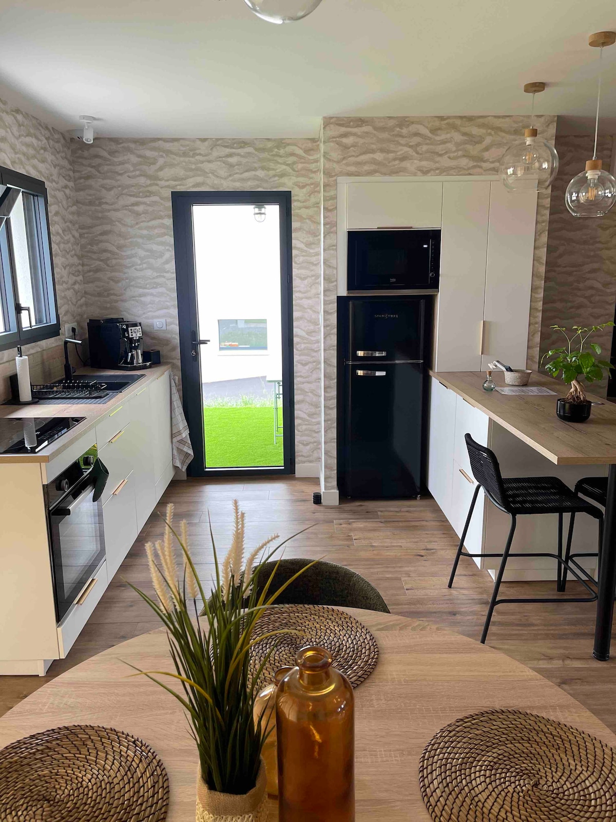 Respeto del protocolo de limpieza reforzada establecido por Air BnB Casa de campo de 130 m2 acondicionada en un antiguo granero distribuido en 2 niveles. Planta baja: sala de estar con zona de cocina y zona de estar. Aseo separado. 1 dormitorio con baño privado (+ lavadora). Planta superior: 1 dormitorio con baño privado + cama para 2 niños. WC separado. Exterior: patio inglés de 93 m2 con muebles de jardín + barbacoa + sombrilla + tumbonas. Espacio verde no vallado accesible desde el lado de la casa de campo y desde el lado de la casa.