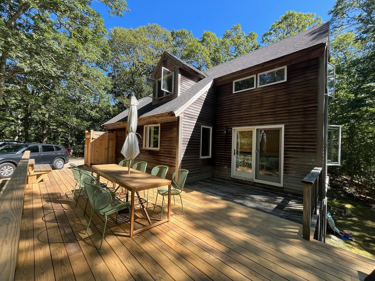 Wonderful 3 Bed, 2 full bath single floor home. Bedrooms on two separate wings. Fully stocked kitchen with center island and breakfast bar. Large living room, vaulted ceiling exposed beams, floor to ceiling windows overlooking private backyard. Central A/C, wifi, smart TVs, washer/dryer, outdoor seating/eating, fire-pit, outdoor shower. Very close to Cape Cod Rail bike path, restaurants, Beaches, Nickerson State Park, golfing, shopping. Dog allowed by request; $30 per night or $150 per week.