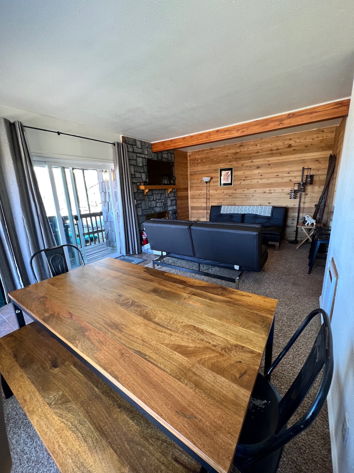 This well-designed, pet-friendly cozy modern retreat with a sophisticated nostalgic vibe awaits! Located across the street from Giant Steps Lodge, restaurants & general store this unit comfortably sleeps 4 (1 K, 1 Q) and can accommodate up to 6 with the sofa bed. You'll also enjoy new appliances including full size w/d, smart TVs, tech upgrades, lots of space for your gear in our large entry and plenty of room to relax after your adventures. License No. BH-20291, max occupancy 6, 1 parking spot.