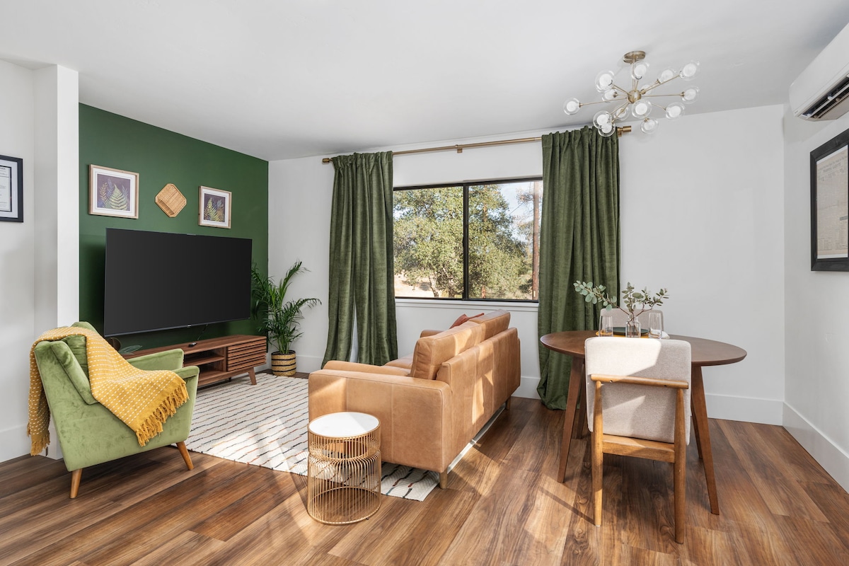 Disfruta del entorno sereno de esta moderna suite, enclavada entre los árboles. Contempla la pared completa de ventanas y echa un vistazo a la vida silvestre que bebe del río Fresno. Siéntete como si estuvieras aislado en el bosque, pero dirígete rápidamente a la carretera y emprende tu aventura al Parque Nacional de Yosemite y otros maravillosos destinos al aire libre. Este estudio generosamente equipado tiene todo lo necesario para un viaje de fin de semana o una escapada de trabajo prolongada desde cualquier lugar. Anfitrión y alojamiento LGBTQIA+ amigable.