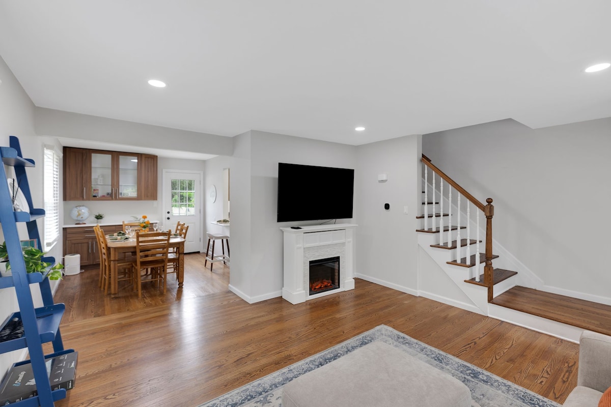 Dúplex colonial moderno a pocas cuadras de la Universidad de Princeton: • Camina a docenas de restaurantes, parques y tiendas • Bicicletas • Cargador de vehículos eléctricos + 2 lugares de estacionamiento. • Gimnasio: bicicleta, pesas, pesas rusas, step • Preparado para familias: Pack & Play, silla alta, juegos, sombrillas • Cerraduras inteligentes Yale + wifi rápido • Cocina con espresso, prensa francesa, goteo y cerveza fría Perfecto para familias, profesores, reuniones y escapadas de fin de semana.