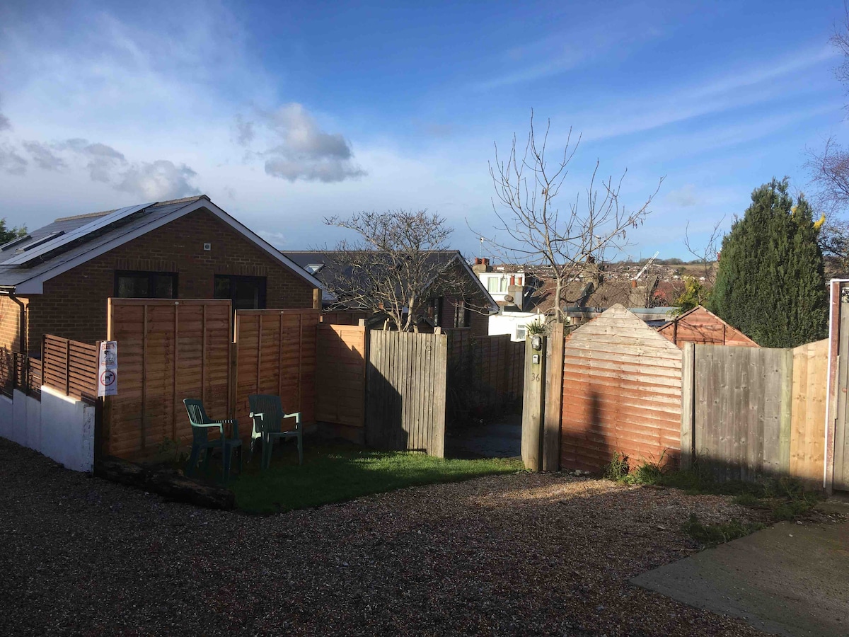 Cabaña de madera ligera, soleada y autónoma con jardín privado orientado al sur, calefacción por suelo radiante, entrada propia, estacionamiento gratuito y desayuno continental. Baño con ducha/WC, área de dormitorio doble, comedor/cocina pequeña, Wi-Fi y entrada propia a lo largo de un carril privado. El estudio está en una tranquila calle residencial con estacionamiento gratuito en la vibrante ciudad de Brighton. El centro/mar está a 35 minutos a pie, o a poca distancia en coche/taxi/autobús. Capacidad para 2 personas (cama doble) y bebé/niño. Cuna de viaje disponible. Todos son bienvenidos.