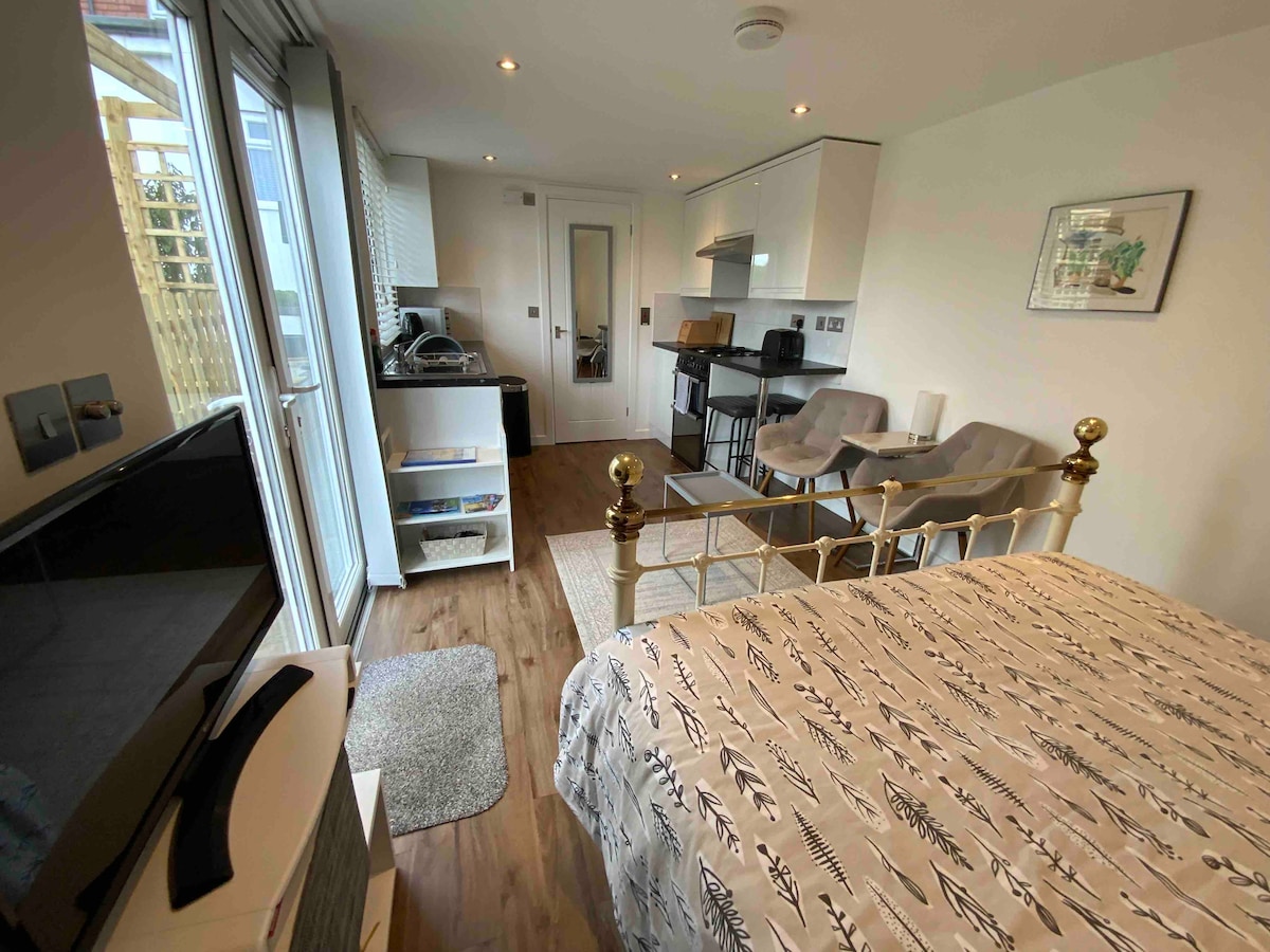 Estudio luminoso, orientado al sur y autónomo con terraza privada y ajardinada en una calle tranquila y verde. Espacio divertido con sofá cama y dormitorio en altillo al que se accede por una escalera. Perfecto para personas solas o parejas, pero puede alojar hasta cuatro (se adapta a una familia joven). Salón, comedor y cocina de planta abierta con TV inteligente. Ubicación céntrica en la hermosa e histórica ciudad de Lewes. A 5 minutos a pie de pubs, tiendas y restaurantes. Ubicado en la parte delantera de la casa del anfitrión (disponible todos los días).