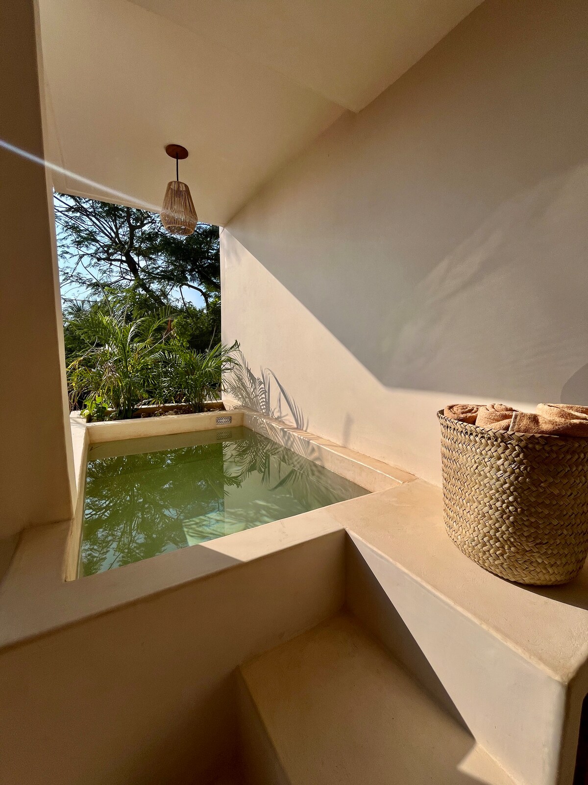 Hermosa y espaciosa suite con cama kingsize, TV giratoria de 50”, Aire acondicionado, cocina, baño y piscina privada. Siente la tranquilidad, relájate en el hidromasaje de tu piscina privada y disfruta de la comodidad de contar con todo lo necesario para una estancia placentera. Nos encontramos en Punta Zicatela, a 7 minutos caminando de la playa, principal punto de surf, restaurantes, bares y zona comercial. Cerca de todo, pero fuera del bullicio de la fiesta. Contamos con Internet Starlink