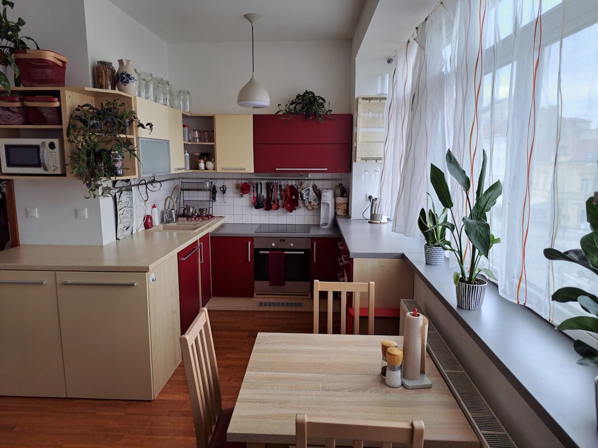 Relájese por encima de los tejados de las casas de los alrededores. El interior minimalista y funcionalmente amueblado del apartamento NAD STŘECHAMI es un gran lugar para relajarse después de un largo viaje o un día de trabajo exigente. El apartamento de nueva construcción dispone de un baño moderno, una cocina totalmente equipada, un sofá maxi y una cómoda cama de 180*200 cm. En el ático hay una litera con espacio adicional para dormir directamente bajo las estrellas.