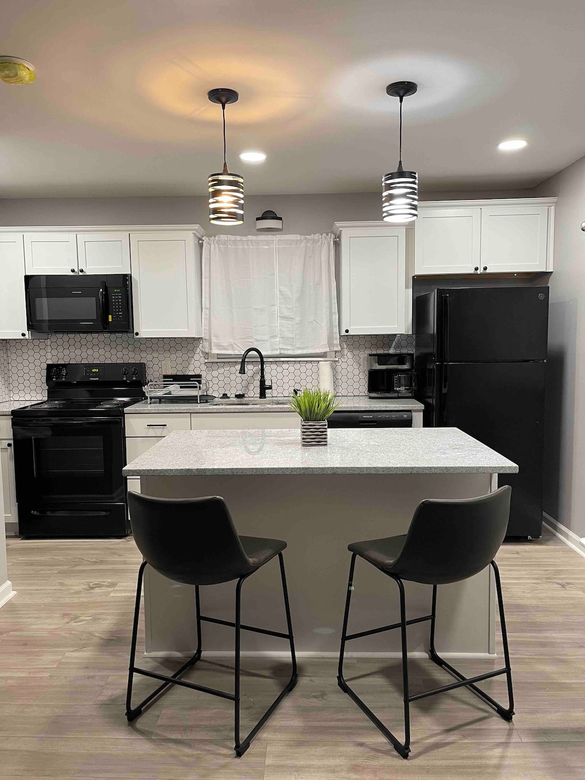Alojamiento espacioso con capacidad para 8 personas. La suite principal cuenta con una cama tamaño king, una cama nido individual, un colchón inflable, un televisor de 55 pulgadas con barra de sonido, una ducha renovada, una bañera profunda y un vestidor. Dos dormitorios adicionales cuentan con camas queen. Disfrute de aire acondicionado central/calefacción, lavadora/secadora, cerradura inteligente, detectores de humo y extintor de incendios. La cocina incluye una cafetera Keurig para tu estadía.