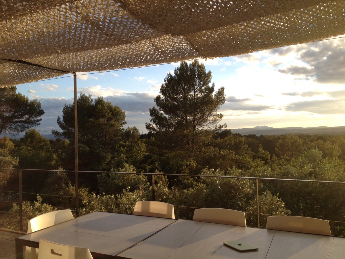 Muy bonita casa atípica con una torre de piedra con vistas a las llanuras del Argens, el macizo de la Sainte Baume, la Sainte Victoire, el monte Aurélien y las montañas de los bajos alpes. Su arquitectura, su historia y su exposición la convierten en un lugar único y mágico donde podrá relajarse en paz. La expresión del hijo de mi bisabuelo, citada en su libro sobre Seillons, cobra entonces todo su sentido, «no hay castillo sin torre...» Albert FLORENS