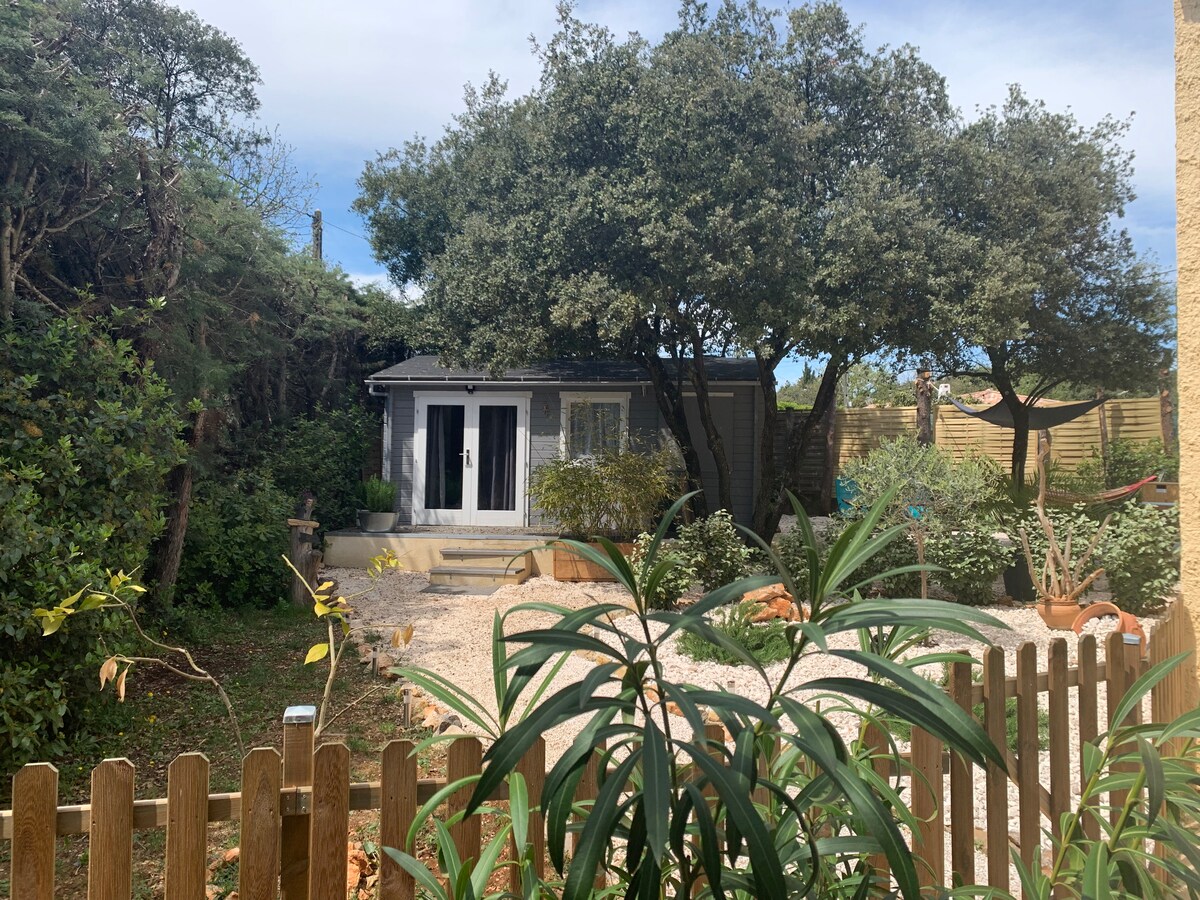 Casa insólita en el fondo del bosque. En la Provenza verde, entre bosques, olivos, garriga y viñedos. Fogata en invierno, piscina, pista de petanca, siesta, momento de meditación, yoga o lectura bajo la pagoda en el bosque. En plena naturaleza en un entorno excepcional. Cabaña con todas las comodidades y aire acondicionado, tranquila para recargar energías y desconectar. Aparcamiento. Valla para nuestros amigos los animales. Vacaciones ideales para visitar lugares magníficos.