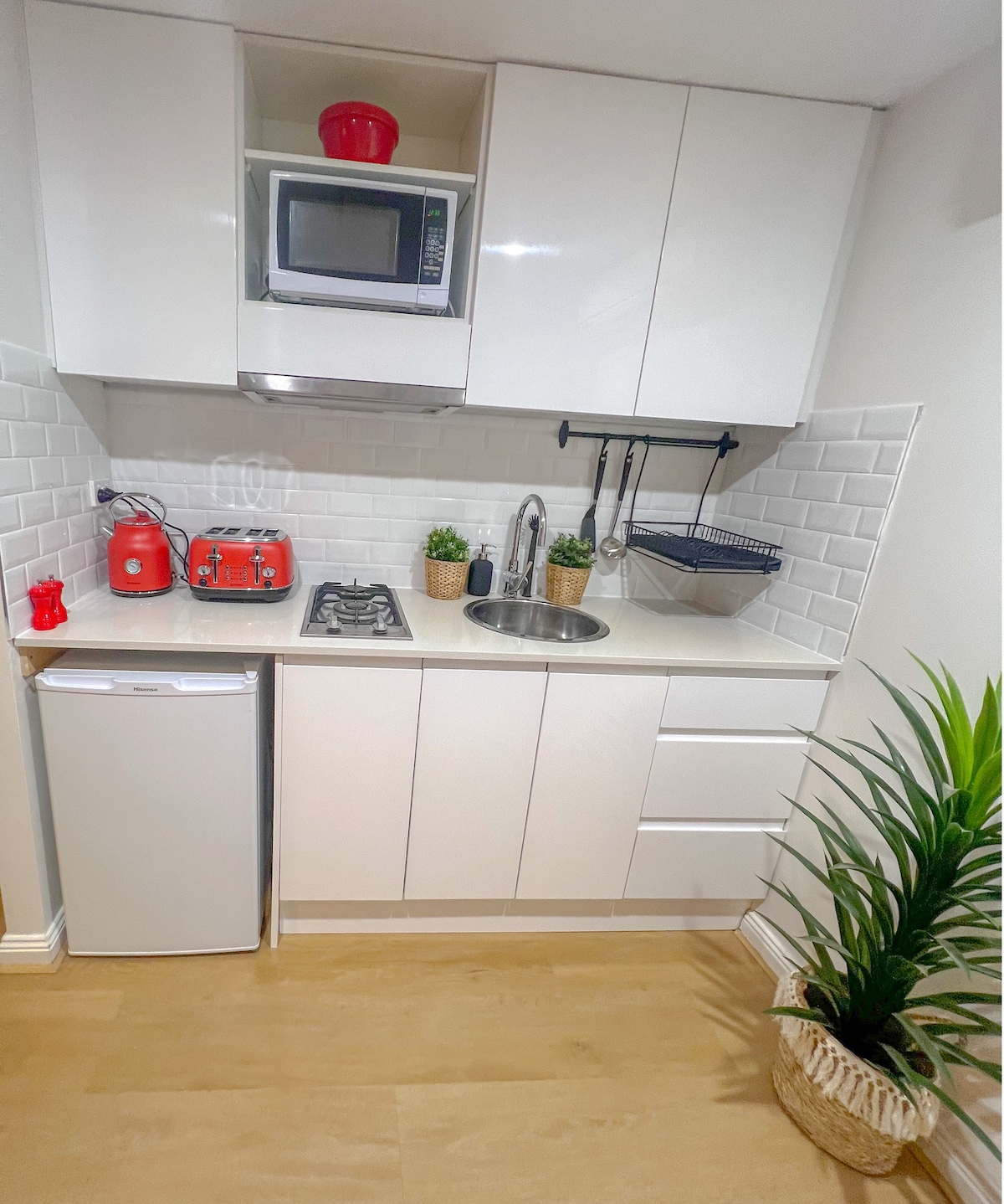 Un gran estudio independiente lleno de luz. Decorado con una paleta escandinava minimalista. Esta casa bien equipada ofrece una cocina completa con instalaciones de cocina de inducción, horno de convección y todo el equipo para preparar una comida romántica. Una zona de dormitorio bajo altos techos abovedados decorados con una cama tamaño queen, colchón de lujo y sábanas de algodón egipcio, es un espacio relajante y espacioso para relajarse después de un día de exploración. Un baño elegante y moderno que cuenta con una ducha de efecto lluvia es la manera perfecta de relajarse y disfrutar de las mañanas de Melbourne. Los huéspedes tienen acceso a su entrada privada y al patio con un jardín al aire libre para desayunar y compartir una charla junto a un pequeño jardín de hierbas orgánicas. Michele y yo estamos disponibles para cualquier pregunta, historias y recomendaciones sobre qué hacer en Melbourne. Ubicado dentro de la vegetación y los parques de Princes Hill y Historic Carlton, está a pocos pasos del pueblo de Rathdown Street y de los icónicos restaurantes «Little Italy» en Lygon St. Luego, acomódate para ver una película en el cine local Arthouse Cinema Nova. Estamos situados a 5 minutos a pie de las líneas de tranvía que se dirigen a la ciudad, Sydney Road y Brunswick East, y hay aparcamiento disponible alrededor de la casa o simplemente puedes ir en bicicleta como un verdadero lugareño.
