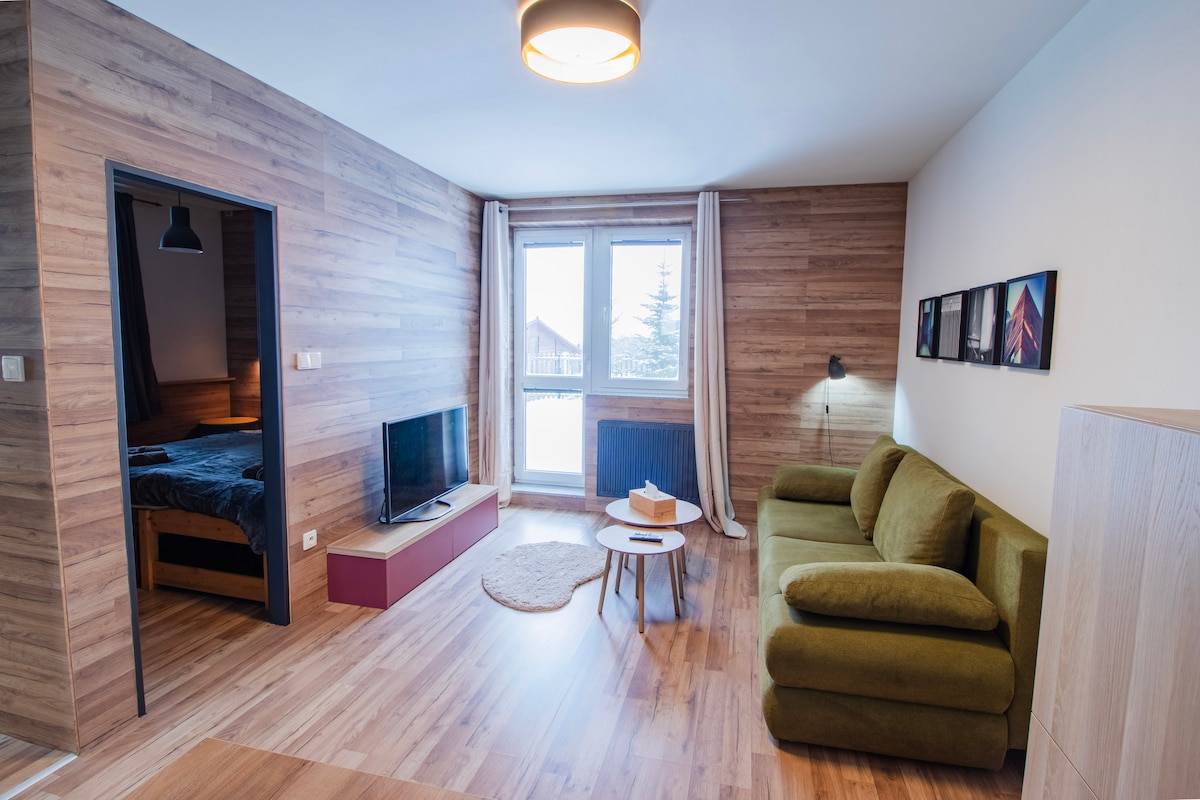 ♥ Pokud máte dotazy nebo speciální požadavky, napište nám ♥ Užijte si klidný pobyt v útulném apartmánu, který se nachází jen kousek od malebného lesa. Moderně zařízený apartmán je ideální pro milovníky přírody, turistiky a relaxace. Apartmán nabízí manželskou postel, plně vybavenou kuchyň, Wi-Fi a bezplatné parkování.