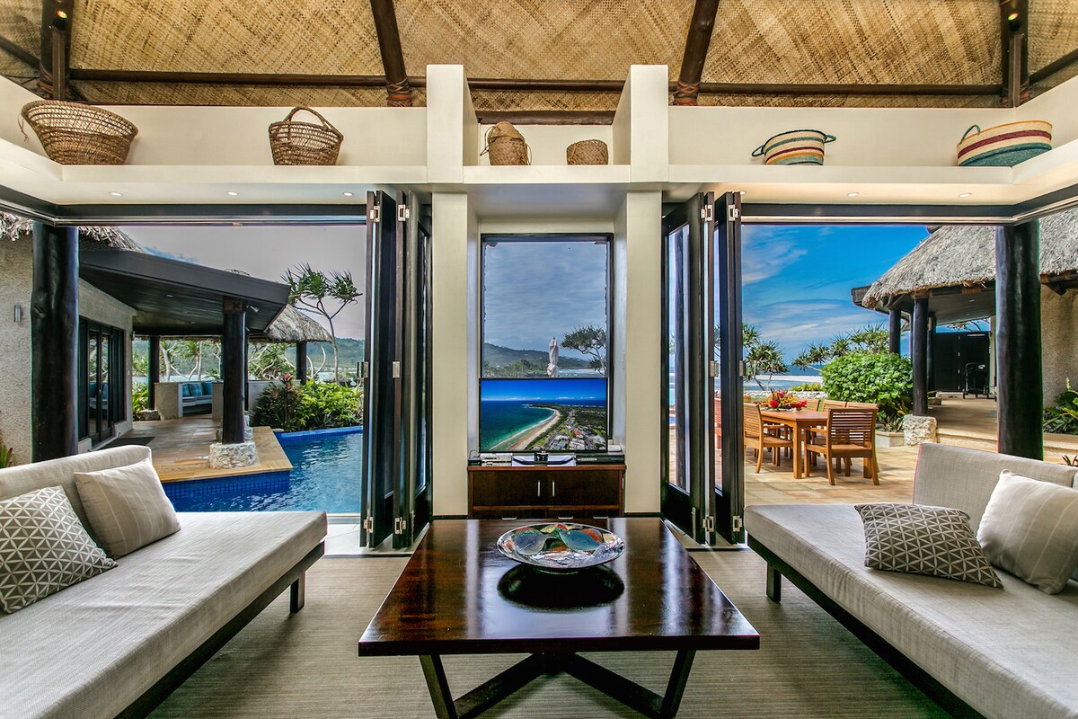 Despiértate con vistas panorámicas al mar en esta villa de lujo frente a la playa solo para adultos en Savusavu. Perfecto para parejas y recién casados, cuenta con una playa privada de arena blanca, esnórquel y kayak, y fácil acceso al mundialmente famoso Rainbow Reef. Disfruta de una espaciosa suite tamaño king, una sala de estar tropical al aire libre y un desayuno diario hecho con ingredientes locales. Almuerzos caseros (25 dólares de Fiji) y cenas preparadas por el chef (55 dólares de Fiji) disponibles. Dirigido por Superanfitriones y amado por su privacidad, romance y auténtica calidez fiyiana.