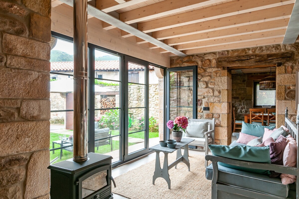 Moderna casa de piedra con vistas panorámicas y wifi
