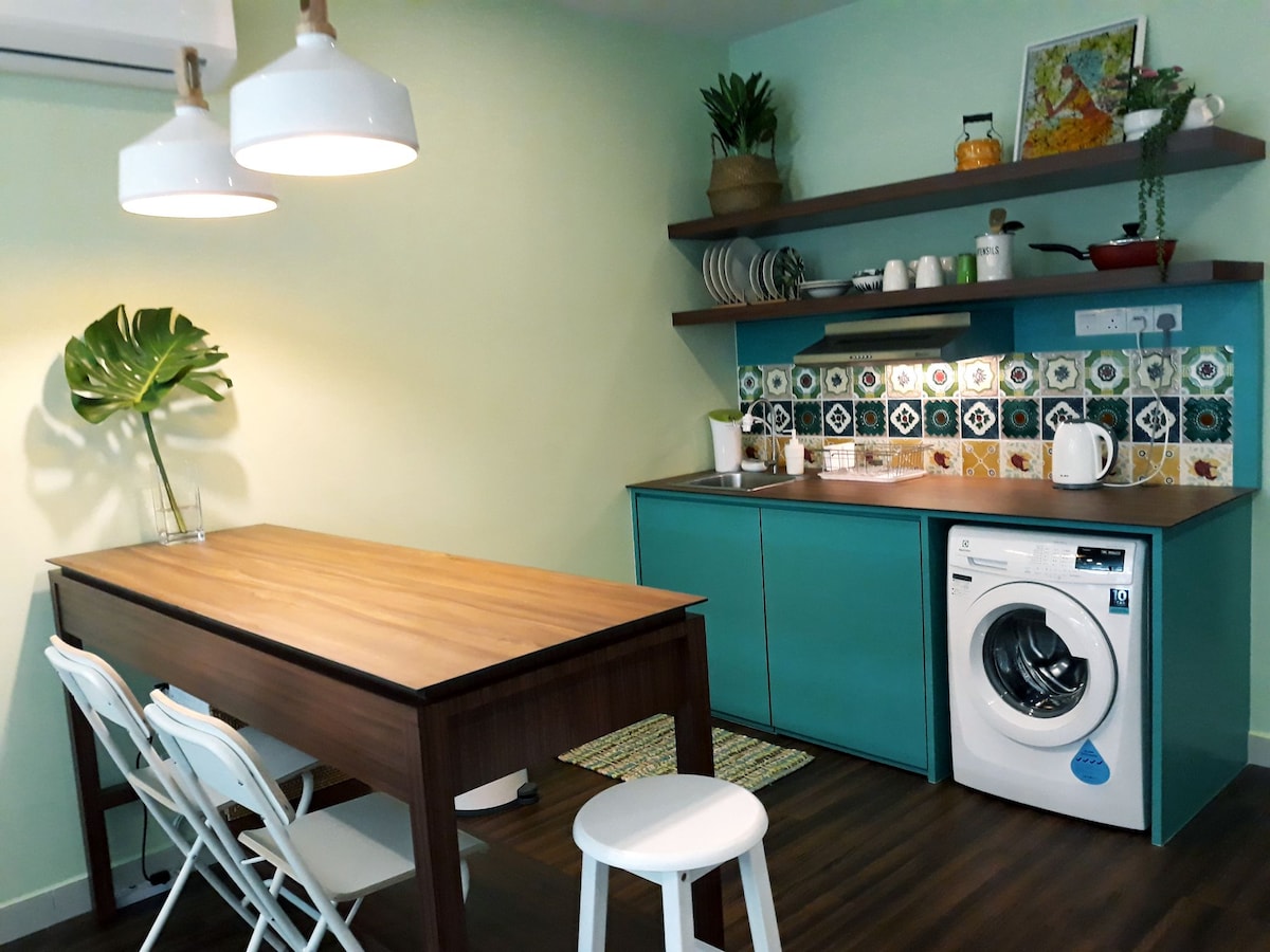 The Tropics is for travellers who need accommodation with washer and convenience. This Comfortable Self Check-In Studio, Unique & Peaceful Home is designed with the hybrid of Modernity, Peranakan and Tropical essence to enrich the distinct temperature, feeling & ambiance of Malaysia. The Tropics is also complemented by its location in the Heart of Petaling Jaya, above rebranded nostalgic Atria Shopping Gallery tenanted with various F&B outlets, Village Grocer, Pharmacy etc