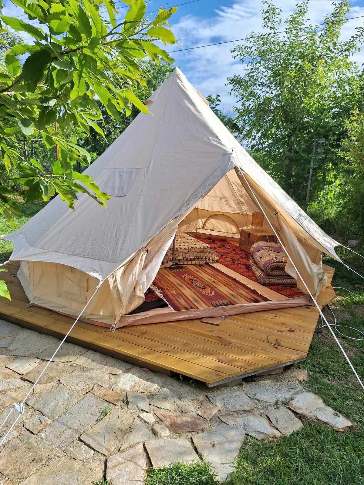 La tienda de campaña contiene cómodos colchones futones, acogedores edredones y almohadas, alfombras búlgaras tradicionales y otras decoraciones étnicas. Tiene malla de mosca en todas las ventanas y puertas y un suministro de electricidad. Tendrás acceso a una cocina totalmente equipada, modernas instalaciones de baño compartido y el funcionamiento del camping con varias áreas de patio a la sombra. una fogata y barbacoa , tenis de mesa y otros juegos al aire libre. Ten en cuenta que no hay restaurantes a pocos pasos, solo una pequeña tienda del pueblo.