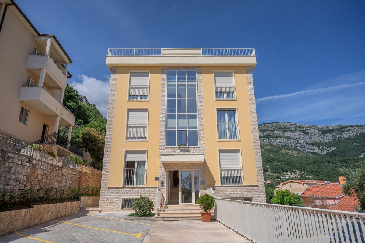 Con un jardín, Dreamsky Haven ofrece alojamiento en Petrovac na Moru. Esta propiedad está ubicada en una comunidad cerrada y ofrece acceso a una terraza, una gran terraza de observación y estacionamiento gratuito. Con conexión WiFi gratuita, este apartamento de 1 dormitorio cuenta con una gran TV con Netflix, Amazon, lavadora y cocina totalmente equipada. Para mayor comodidad, el apartamento está equipado con persianas eléctricas. La propiedad ofrece impresionantes vistas a las montañas y al mar. El apartamento está ubicado en el primer piso.