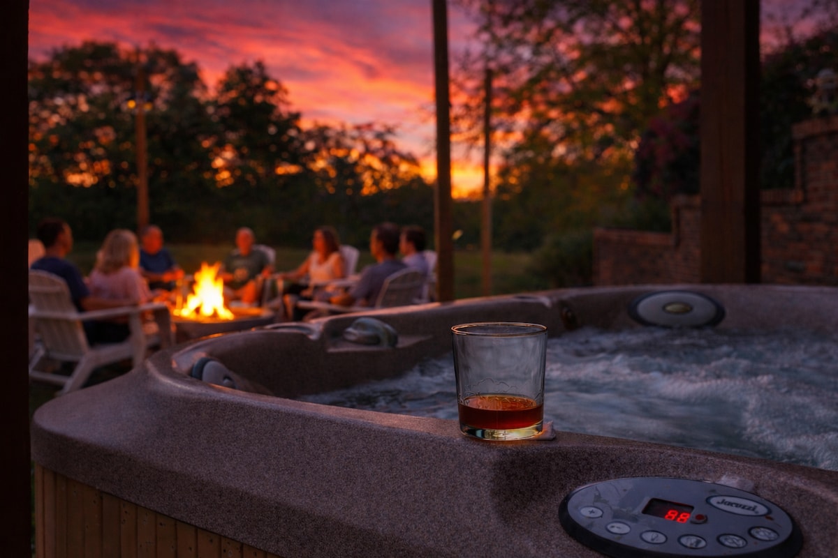 ¡Te damos la bienvenida a la cabaña en Rams Run! Esta acogedora cabaña de 5 dormitorios y 5 baños completos recientemente renovada es el centro vacacional perfecto para viajes para adultos y familias por igual. Situada en la cima de una cresta justo encima de la destilería James B. Beam, la cabaña se encuentra en una ubicación perfecta directamente entre la cultura y las atracciones de Louisville, y las destilerías de Bardstown, ¡la capital mundial del bourbon! Después de recorrer el campo de Kentucky, disfruta del jacuzzi, la sala de juegos con mesa de billar o la cancha de pickleball cubierta.