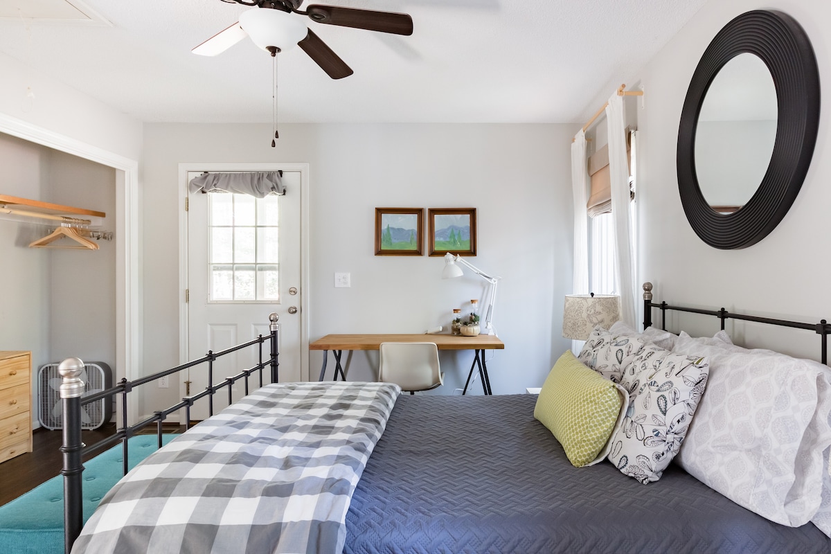 The Last Minute Cottage es un acogedor estudio INDEPENDIENTE recientemente renovado en un garaje de los años 40. Está convenientemente ubicado a 4 manzanas de la popular Haywood Road y de todas las tiendas, restaurantes y bares de West Asheville. ¿Quieres salir? El río French Broad, Carrier Park y Greenway están a solo 1/2 milla de distancia. ¡Fácil acceso para flotar o pasear por el río! La casa también está convenientemente ubicada a solo 2 millas del centro de la ciudad y a solo 1 milla del distrito de River Arts.