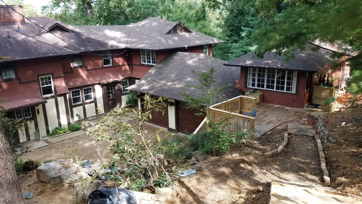 ¡Baño recién renovado! Situado a solo una milla al norte del centro de Asheville. Barrio muy seguro y transitable. A pocos pasos de una vía verde urbana para pasear perros y andar en bicicleta. La cabaña es una unidad separada con entrada privada. 400 pies cuadrados con baño, cocina pequeña, corazón de pisos antiguos de pino. Estamos a dos millas del Grove Park Inn y a cuatro millas de la casa Biltmore. El espacio es apropiado para dos adultos o un adulto y un niño.
