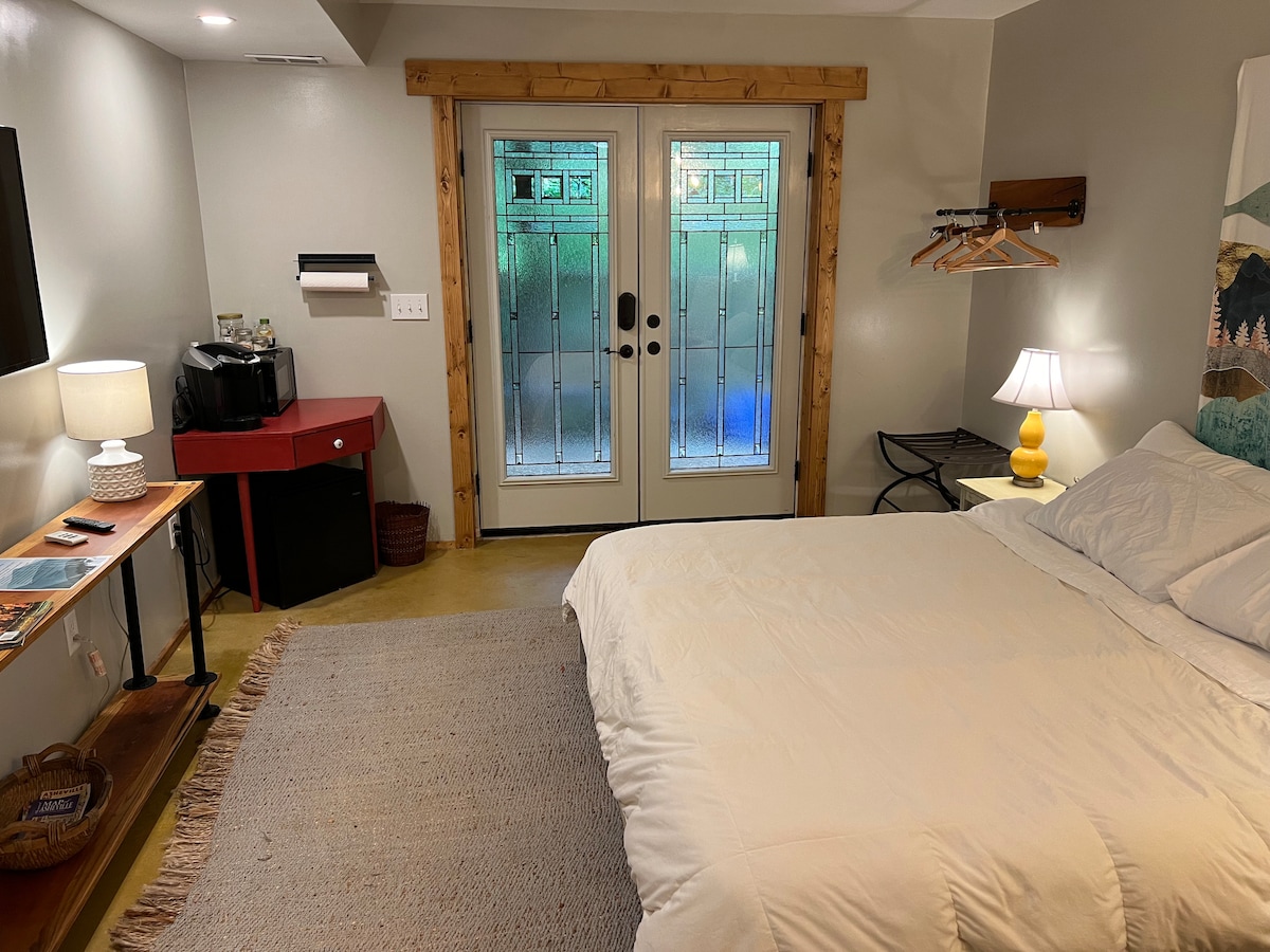 ¡Te damos la bienvenida a Scout's Den! Un acogedor refugio a poca distancia a pie de todos los increíbles restaurantes y tiendas de Black Mountain. Este adorable estudio con jardín está separado de la casa principal y tiene una cochera con espacio para un vehículo. ¡Esto es realmente una escapada! Sin internet, animamos a nuestros huéspedes a disfrutar de la belleza natural de las montañas y del encanto de nuestra pequeña ciudad. Tenemos una televisión con una Super Nintendo y un reproductor de DVD si te apetece quedarte en casa. Vivimos en la propiedad a tiempo completo con nuestra familia.