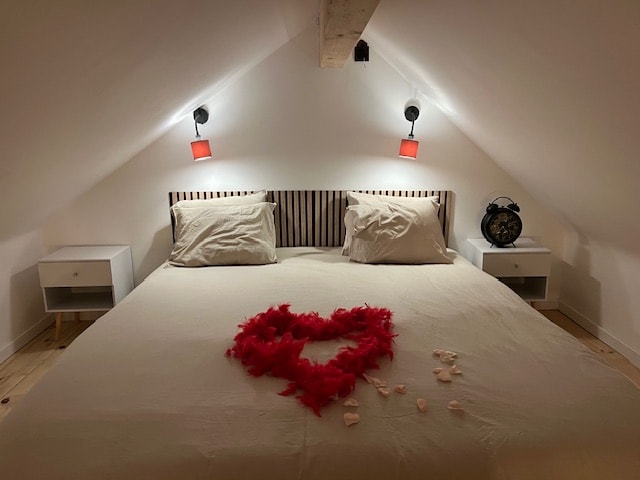 El pico verde Ven a alojarse en 2 o con los niños en una micro casa rural de 3 espigas en el corazón de la Hesbaye. Situado en un entorno rural y tranquilo, el Pic Vert está equipado para complacer a todo el mundo: una cama cabaña para los niños y bicicletas eléctricas para ir a pasear por el Ravel o a través de los campos. Una casa rural con todas las comodidades que consta de cocina totalmente equipada, sala de estar cocoon, baño y dormitorio cama doble y cama cabaña (para niños).