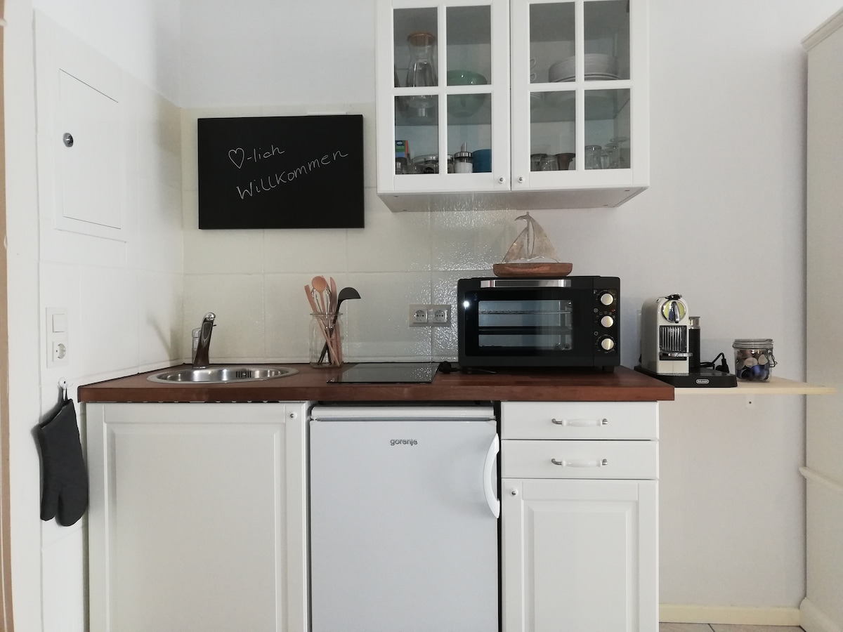 En el casco antiguo de Burg se encuentra este pequeño y acogedor apartamento con balcón francés. En la sala de estar hay una gran cama doble, una zona de estar con TV y un pequeño sofá y sillón y una zona de comedor. El apartamento dispone de una cocina bien equipada (nevera, mini horno, cafetera, hervidor de agua, tostadora y suficientes platos) Tamaño: aprox. 28 m², planta baja, solo hay que subir tres escalones