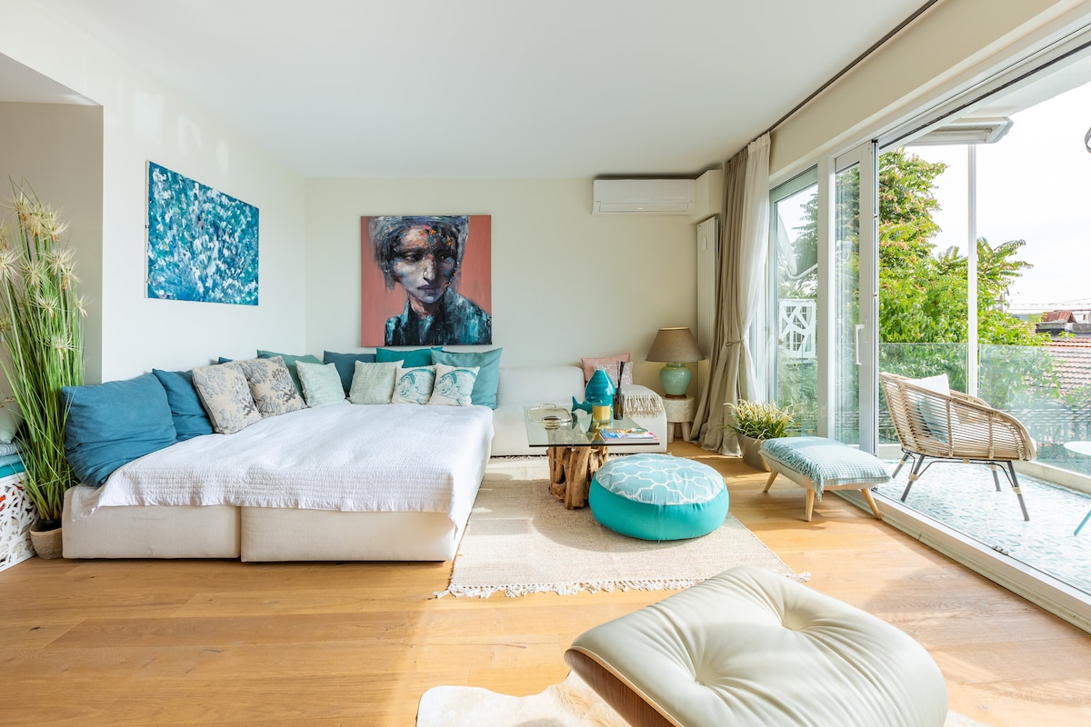 The apartment welcomes you with it's relaxing interior and spectacular Historical Peninsula view. This amazing sight becomes even more magical from the balcony every season and every hour of the day.All the furnitures are chosen from exclusive design brands and aiming to make you feel comfortable in a luxury zone. The turquoise tiles are handmade gives the personality to this magical living space. The walls has a beautiful harmony with again beautiful custom made floor tiles.