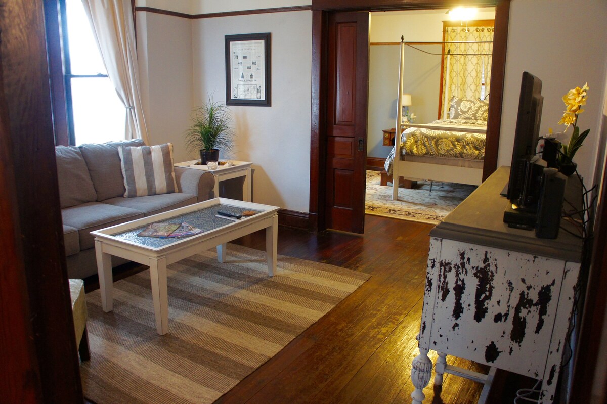 Ven a alojarte en nuestro bed and breakfast mejor valorado, ubicado a dos manzanas del hermoso lago Ginebra. Relájate en nuestras suites California king, cada una con bañera de hidromasaje y ducha, con suelos radiantes y toalleros en el baño. Tu cesta de desayuno de cortesía se coloca en tu nevera antes de la fecha de llegada, así como un regalo de cortesía de vino y queso. Hay wifi gratuito disponible en la propiedad. No se admiten mascotas, SOLO ADULTOS mayores de 21 años.