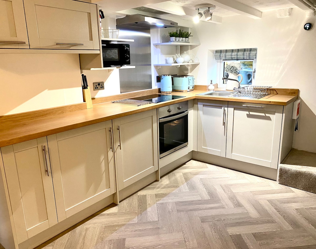 El alojamiento de la planta baja está elegantemente decorado con un gran salón comedor de planta abierta que cuenta con paneles de pared pintados de estilo jacobeo como telón de fondo impresionante. Las ventanas con parteluces de piedra, los techos con vigas, los suelos de roble y las puertas dan una sensación de encanto rústico a la estructura del edificio y, sin embargo, cuenta con todas las comodidades modernas. Hay acceso a jardines arbolados y ajardinados con vistas de largo alcance a la campiña circundante y una zona privada para sentarse y disfrutar de la ubicación.
