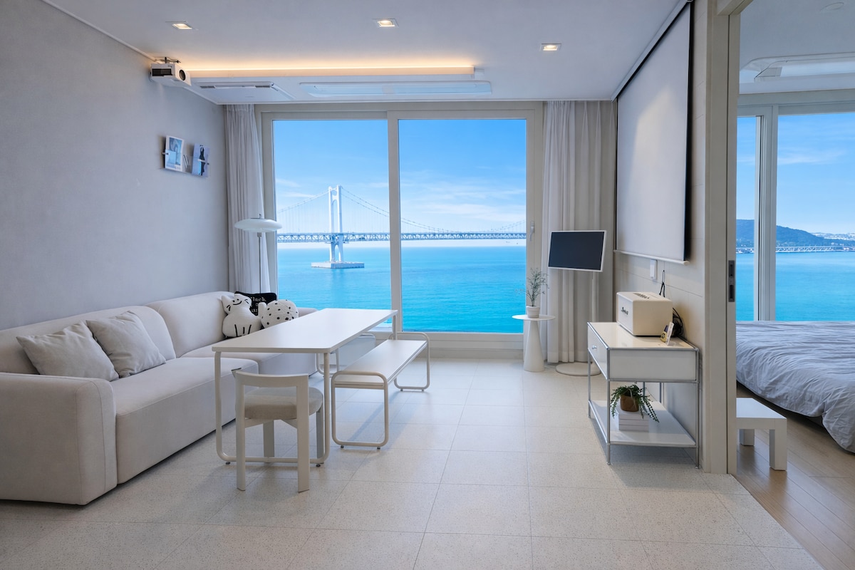 🌈 Busan Gwangan MOODRIAN Residencia con vista completa al mar del puente Gwangan que completa un estilo de vida premium Gwangalli Moodrian, ubicado en la playa de Gwangalli, Busan Un espacio digno adecuado para todos los viajes familiares, de amantes y de amigos, El panorama dinámico del puente Gwangan se despliega ante tus ojos Este es un alojamiento con vistas completas al océano que se puede ver desde la parte delantera del dormitorio y la sala de estar. ✨ Vista al mar · Vista a la ciudad · Vista al puente Gwangan en una pantalla Un apartamento nuevo y raro en Gwangalli y un diseño espacioso con una estructura de dos habitaciones de 20 metros cuadrados Comodidad hogareña completada con comodidades premium y una gestión cuidadosa 🏡 Interior moderno y estable con comodidades de lujo, Desde estancias cortas hasta estancias largas, ofrecemos la mejor comodidad. Siempre lo mantenemos limpio y ordenado con la cuidadosa administración del anfitrión. La comodidad es como un hotel, El corazón está más cerca. 😊 Pequeños momentos en Mudrian Espero que tengas un buen recuerdo. 💛