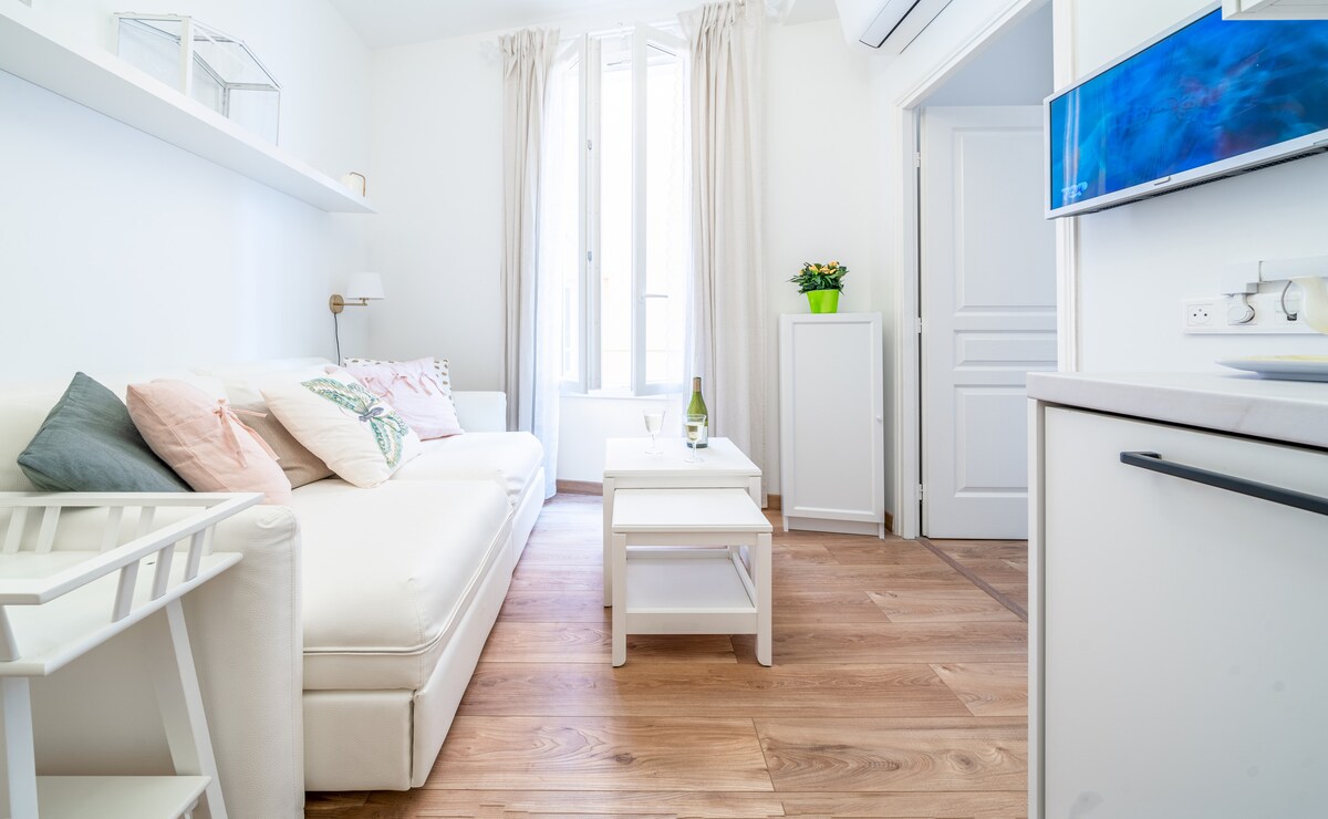 Loft muy luminoso y acogedor ubicado en el último piso (6.º EE. UU.) con ascensor en un edificio histórico (con ascensor) a tiro de piedra del Puerto Viejo. La unidad está orientada al este y ofrece vistas sin obstáculos al Puerto Viejo, Cap de Nice y el mar que puedes disfrutar desde el patio, el sofá, la mesa de comedor o incluso tu cama. La ubicación no puede ser mejor: las playas, el paseo marítimo, el casco antiguo y todos los servicios están a solo 5 minutos a pie. Se puede acceder a la unidad desde el aeropuerto con la línea 2 del tranvía.