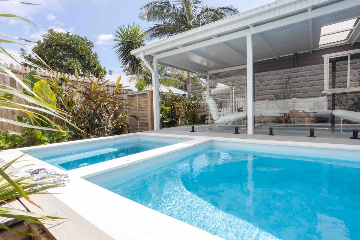 La casa de playa Little Burns es imprescindible. La casa es una casa de campo centenaria renovada con buen gusto para reflejar el encanto clásico de la casa de playa de Byron Bay. No se puede superar la ubicación, a solo 5 minutos a pie de la ciudad y a un paseo de la playa principal. Disfruta del ambiente relajado y acogedor y relájate en la terraza aislada de un chapuzón en la piscina y el jacuzzi. La casa está bellamente amueblada con un ambiente relajado pero lujoso de la casa de playa de Byron Bay, ¡sabemos que no querrás irte! LO SENTIMOS, NO HAY PERSONAS QUE ABANDONEN LA ESCUELA/SCHOOLIES