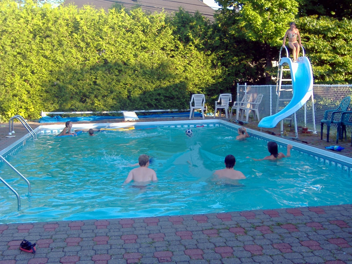 Hermosa, luminosa, espaciosa y moderna casa con 3 dormitorios arriba, internet de alta velocidad y más de 4 mesas/escritorios. Escapada familiar perfecta para familias de 4 a 14 personas. A minutos del parque Gatineau y del mejor esquí de campo. Privado: jacuzzi y piscina (abierta para chapuzón frío a finales de mayo hasta septiembre); incluye tobogán, tabla de buceo; sauna todo el año; estanque de lirios). Las aves abundan. Las familias prefieren. Prohibido hacer fiestas. Cuéntanos sobre tu grupo cuando preguntes. A pocos pasos de: río, carriles para bicicletas, histórico y encantador Aylmer.