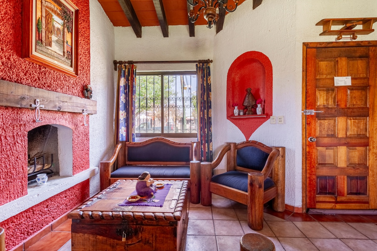 Es una cabaña de construcción ecológica ideal para parejas, o una familia, tiene jardín, en su interior encuentras la acogedora arquitectura de madera y adobe, descubrirás cómo todos los espacios fueron diseñados para descansar y disfrutar la convivencia, está ubicada en un típico barrio mexicano a 20min caminando de la plaza principal. A beautiful cabin made from ecological materials, it has a Garden, In the interior you will find how every space was design for resting