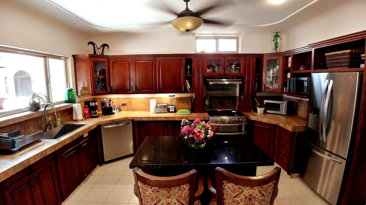 Piensa en una escapada corta o mes(es) para descansar/trabajar a distancia o explorar Baja. El diseño abierto permite un estilo de vida cómodo para solo una pareja, pero puede adaptarse a una reunión de hasta 10 personas. -- Incluye 3 dormitorios + un pequeño dormitorio con litera en la planta superior. + 5º dormitorio tipo estudio independiente en la planta baja con entrada independiente. -- Cocina bien equipada, barbacoa. -- Área de patio y piscina grande, nivelada y muy privada. Sin espacios compartidos. -- Ubicación ideal. Playa, restaurantes y tiendas a poca distancia a pie, a 5-10 minutos. Estacionamiento para 1 auto. ¡Ven y disfruta!