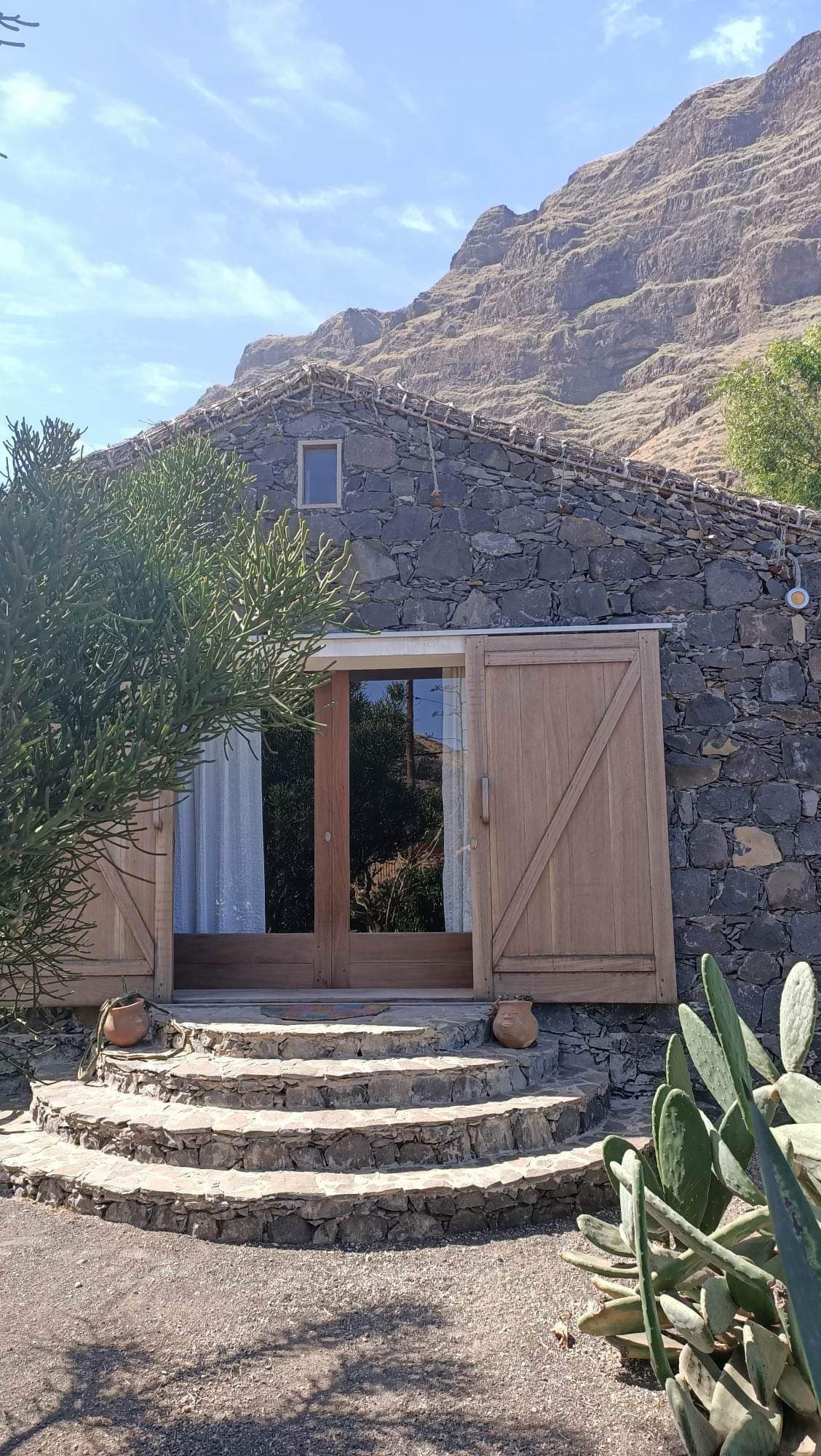 Descanse en Casa Aloe Vera, nuestra hermosa casa de piedra en la orilla rocosa de Cidade Velha, la primera capital del país con 500 años de historia. Disfrute de un estilo de vida tranquilo y gratificante. En nuestra propiedad familiar, estamos listos para ayudar y apoyar su estancia. Cidade Velha ofrece experiencias auténticas y será un placer guiarle. También le brindamos recomendaciones de las mejores playas, senderos y restaurantes de la isla.