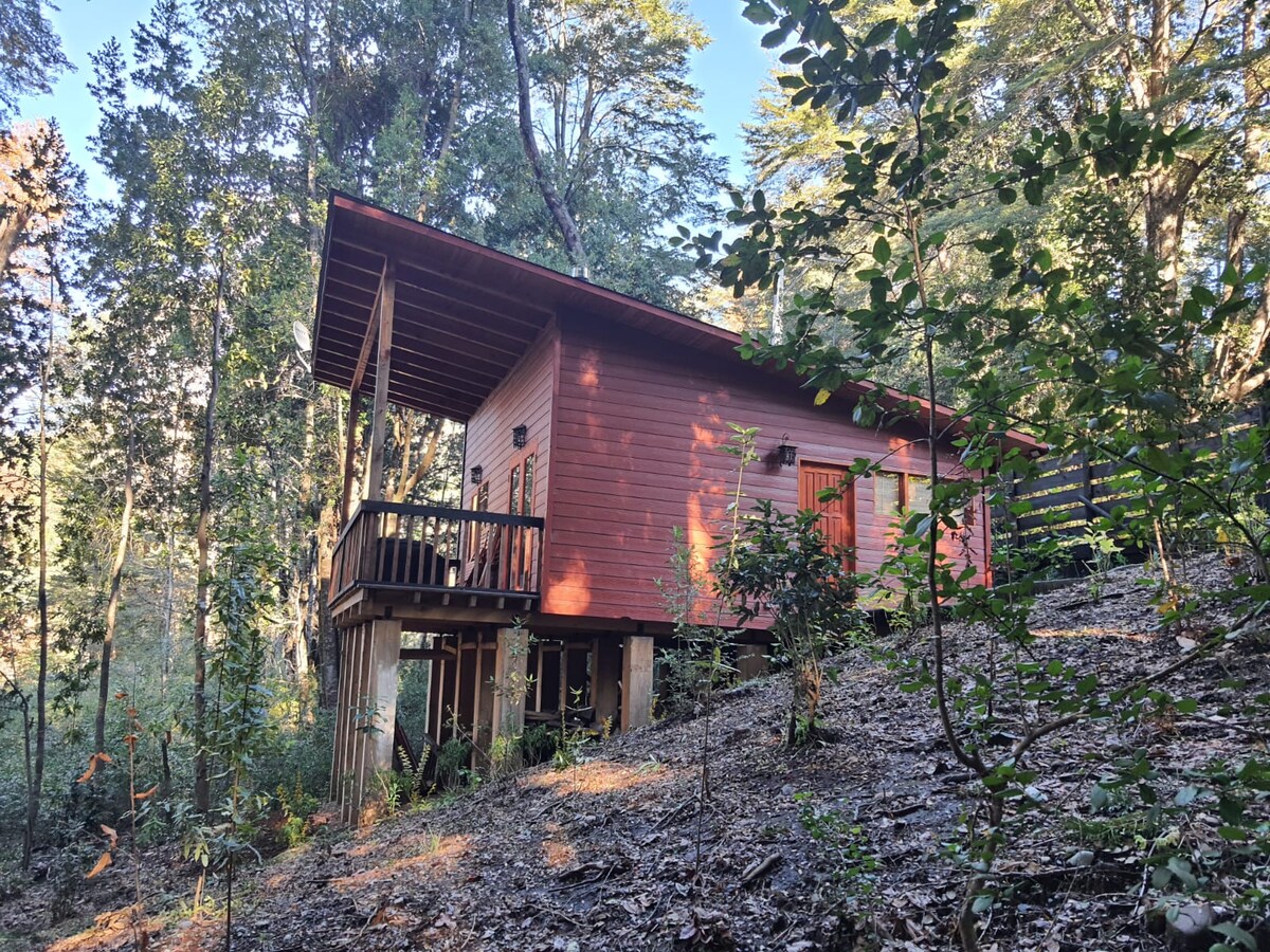 Cabaña entre arboles nativos. Lodge.namoncahue