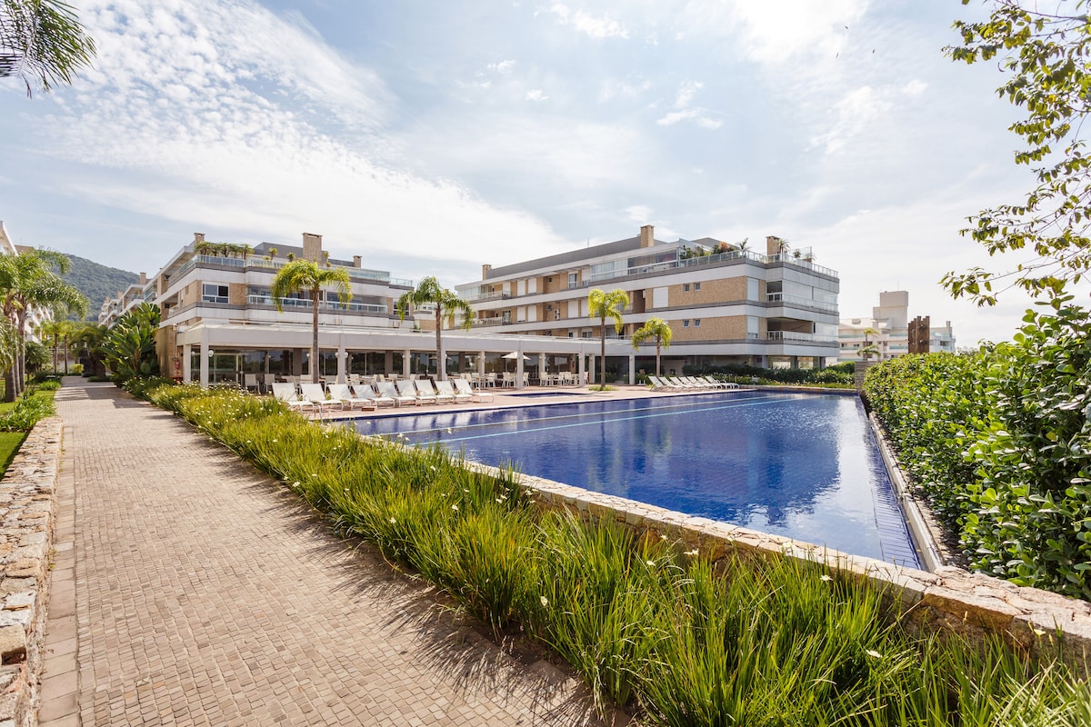 Es un apartamento muy bien amueblado, ubicado en el bloque C, en el Residencial Espelho das Águas, frente a Praia dos Ingleses. Cuenta con ascensor panorámico para acceder a la playa, a dos minutos a pie. Está cerca de las dunas de Santinho). Cuenta con un mercado dentro del condominio, también cerca de otros mercados y restaurantes. Cuenta con piscina con borde infinito, cubierta seca y húmeda, piscina cubierta climatizada y piscina infantil. Amplio mirador para tomar el sol y hermosas vistas al mar.